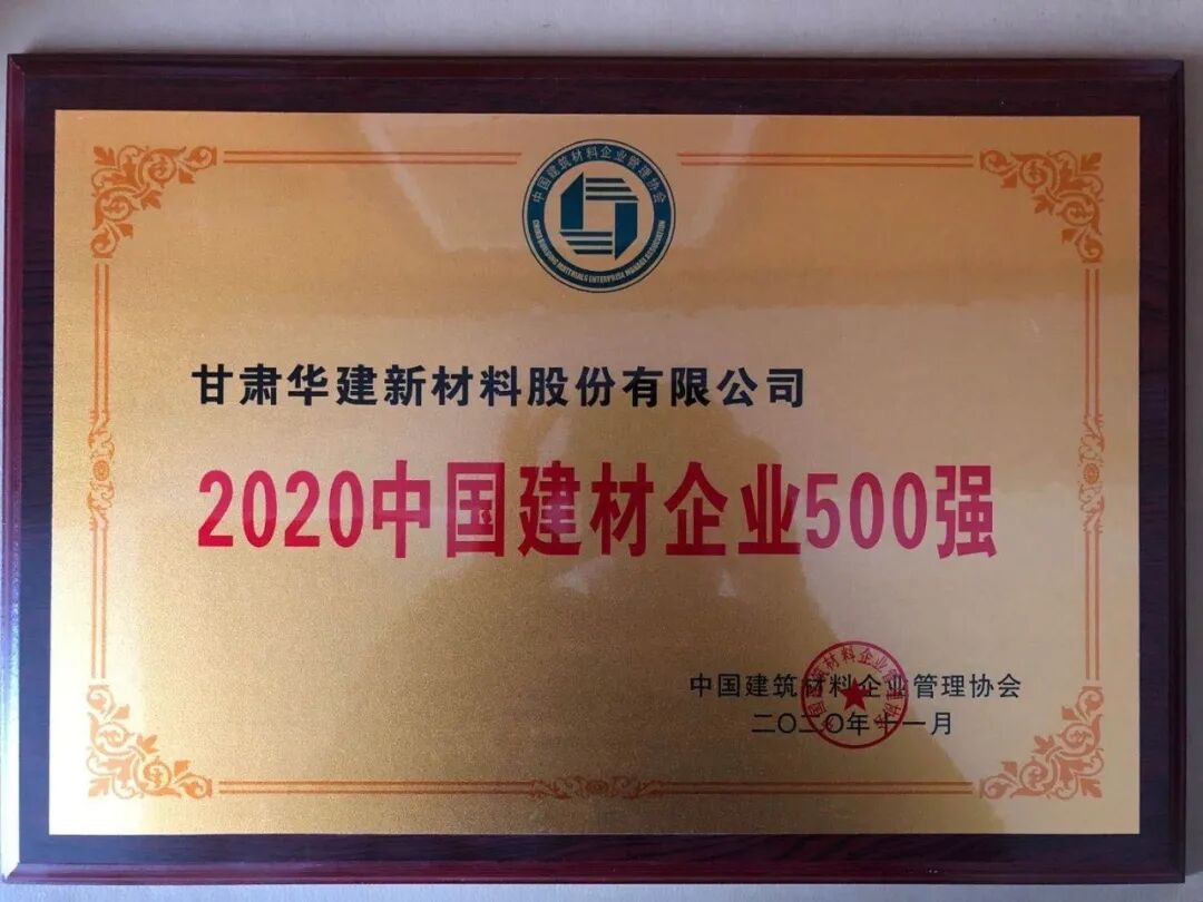 其中,甘肅華建新材料股份有限公司成功躋身“2020中國建材企業500強”榜單。