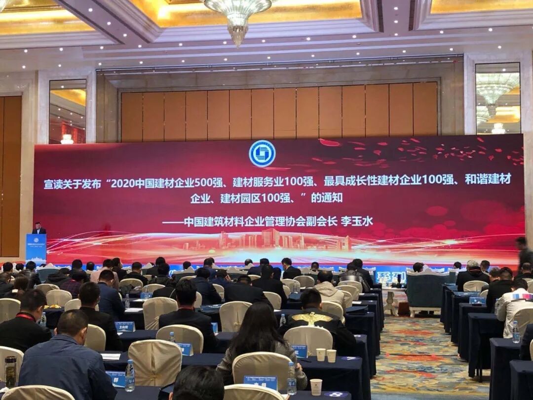 會上,現場發布了“2020中國建材企業500強”、“建材服務業100強”、“民營建材企業100強”、“最具成長性建材企業100強”、“建材園區100強”、“和諧建材企業”以及“2020中國建材工匠”名單。